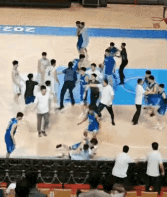 根据《中国篮球协会纪律准则和处罚规定》第二十七条第(三)项规定:有三名以上(含三名)运动员、教练员和工作人员参与打架的为群殴事件。对挑起事端和首先动手的运动员加重处罚,取消本次比赛参赛资格,情节严重、影响恶劣者停赛一至三年,直至撤消运动员技术等级称号。