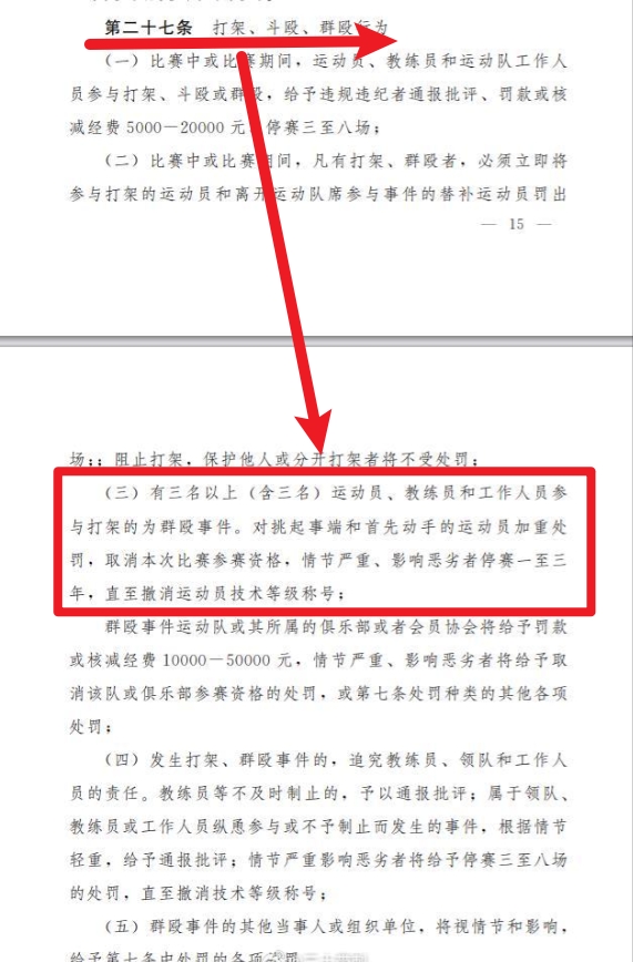 已是顶格处罚条例规定:对挑事者加罚情节严重者停赛13年