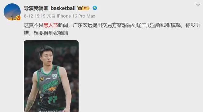 据此前国内媒体人的爆料,广东队想用已经提出交易申请的徐昕,从辽宁队换来张镇麟,该消息尚未得到证实,但存在一定的可能性。