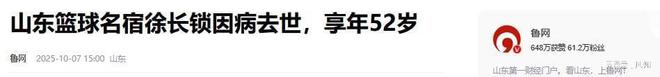 前山东男篮主教练、青岛男篮青训总监徐长锁因病逝世,年仅52岁,这位曾发掘并培养NBA新星杨瀚森的功勋教练,战胜了一切却最终没能战胜病魔。