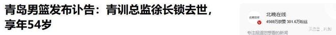 10月7日本是中秋月圆之夜,全国各地都在家人的陪伴下度过了这一天,然而中国篮球界却传来这样一则噩耗。前山东男篮主教练、青岛男篮青训总监徐长锁因病逝世,年仅52岁,这位曾发掘