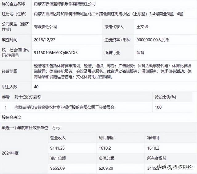 北京时间11月4日,根据媒体人“我爱女篮”的报道,据“内蒙古金融资产交易”的消息,内蒙古农信篮球俱乐部有限责任公司100%股权公开转让,挂牌价为43697313.38元,这也意味着内蒙古