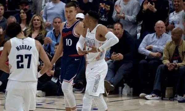 威少底角远射让掘金领先,之后面投祖巴茨,破了快船的针对性放空。