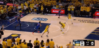 6月1日讯 NBA季后赛东决G6,尼克斯半场54-58落后于步行者。