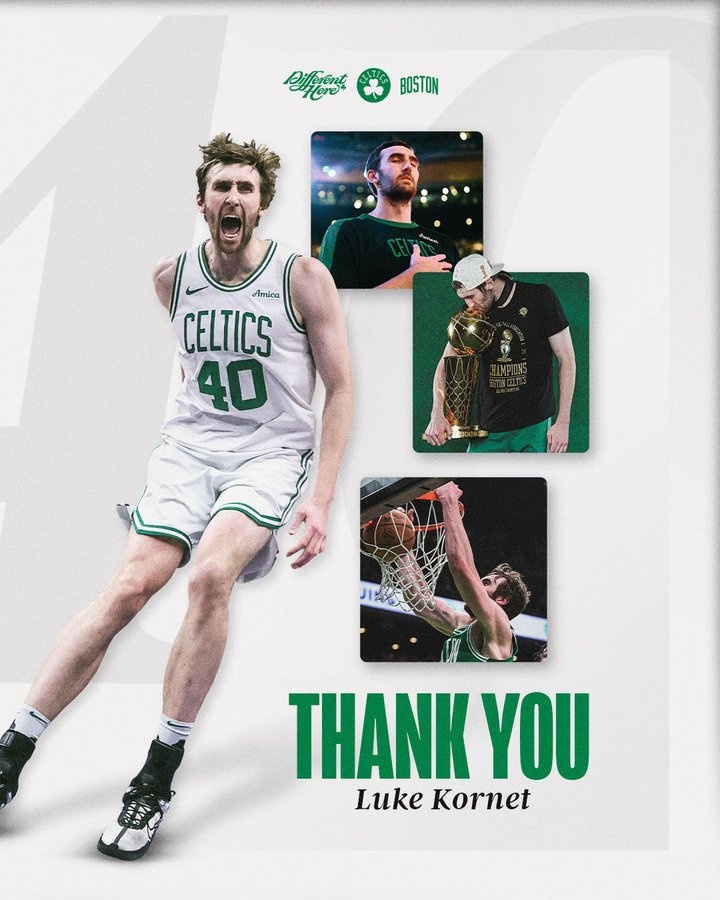 凯尔特人官方晒图致谢科内特:“永远的凯尔特人冠军。卢克,感谢你所做的一切。”