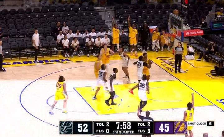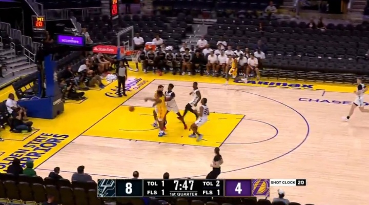 07月09日讯 夏联加州经典赛,湖人依靠贝兹利的补扣89-88准绝杀马刺。