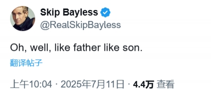 赛后,Skip第一时间发推:“哦,好吧。有其父必有其子。”