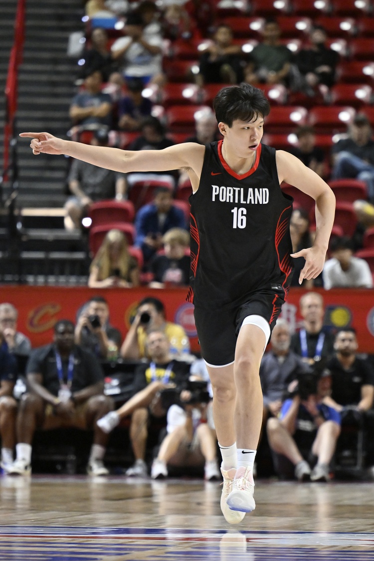 7月12日讯 NBA拉斯维加斯夏联,开拓者106-73轻取勇士。赛后,开拓者16号秀杨瀚森接受了媒体的采访。