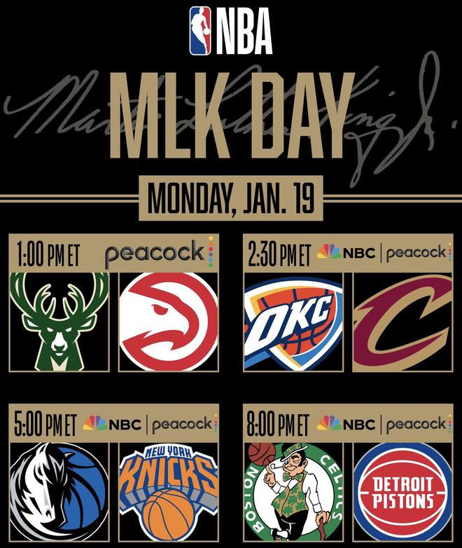 NBA官宣马丁路德金日赛程:老鹰大战雄鹿,雷霆骑士强强对决