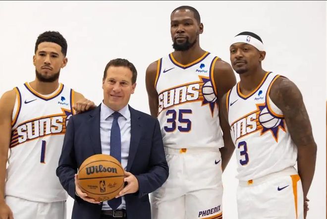 上个赛季,太阳得到了杜兰特和比尔三巨头,却连季后赛附加赛都没打进,球队交着最多的奢侈税,却打着超烂的战绩,成为了球迷们口中的笑柄。今年休赛期,太阳全力围绕着布克建队,交易掉了杜兰特和比尔。