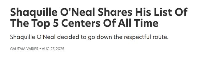 近期,前湖人球星大鲨鱼奥尼尔在接受媒体采访时,被问及“谁是NBA历史前五的中锋”!奥尼尔严肃地表示:“显然,我是NBA最具统治力的中锋,但我喜欢谦虚,所以我想把这项荣誉送给那些为我