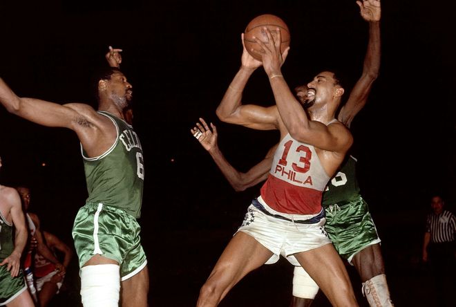 张伯伦的存在,直接推动了 NBA 规则的变革。由于他在篮下的统治力过于无解,NBA在1964年将禁区宽度从12英尺扩大到16英尺,1967年又禁止球员在篮下连续起跳干扰投篮 —— 这些规则调整,本质上都是为了限制张伯伦的发挥。奥尼尔曾调侃:“如果我生在张伯伦的时代,可能也会被联盟改规则。他让所有人意识到,中锋的身体天赋可以强大到这种程度。” 尽管张伯伦的团队荣誉不及拉塞尔与贾巴尔,但他对 “中锋统治力” 的定义,仍让他稳居历史前三。