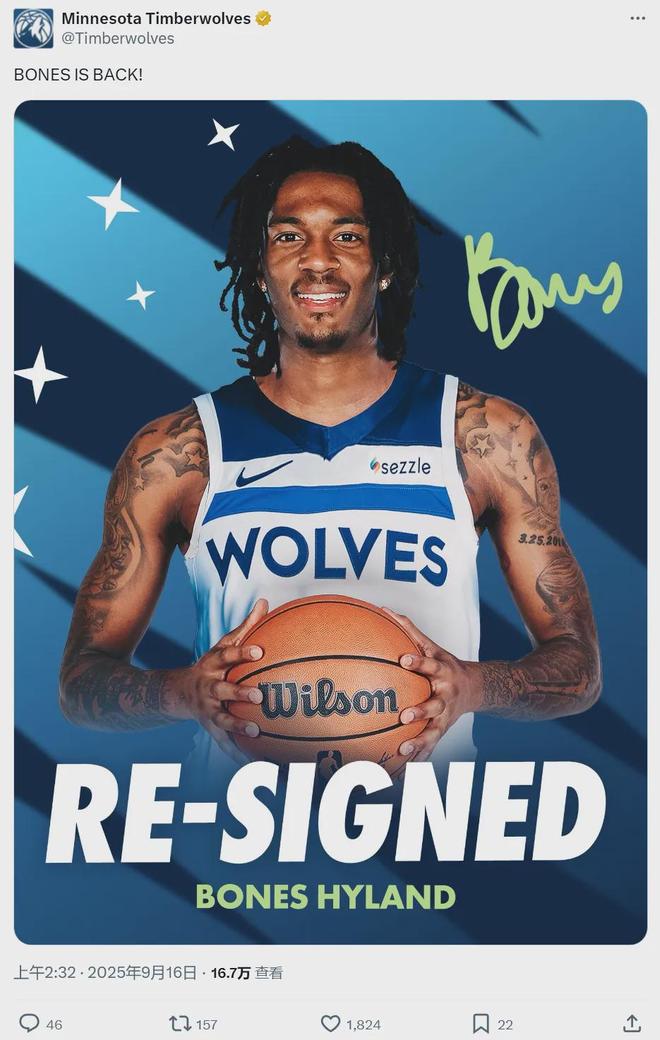 其实NBA在今天有好几个消息传出,现在来看个合集。首先是森林狼的两笔签约。海兰德跟森林狼签下了1年的底薪合同,重回球队。上赛季,海兰德在快船和森林狼合计打了24场常规赛,场均