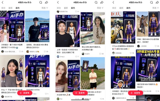 在我回酒店的路上,我发现朋友圈和小红书开始被各种「脑洞大开」的 AI 手办刷屏了。各种「NBA 手办生成」、「我变成 Q 版球星啦」的帖子铺天盖地,网友们也是玩得不亦乐乎。