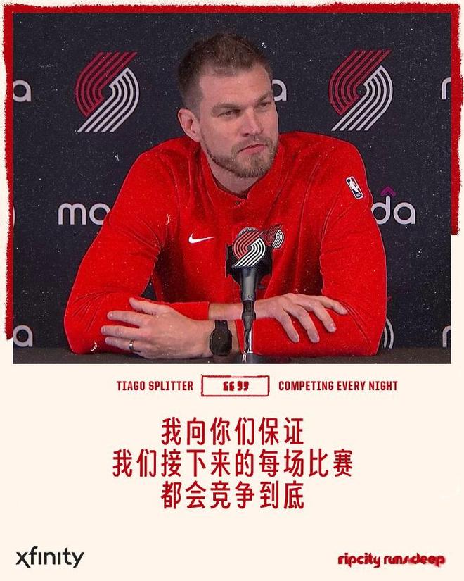 雷速体育10月27日讯 今日NBA常规赛,开拓者107-114不敌快船。赛后,开拓者官方晒出了临时主帅斯普利特在赛后言论。斯普利特说道:“我向你们保证,我们接下来每场比赛都会竞争到底