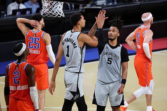 在此前的一场NBA杯西部决赛中,圣安东尼奥马刺经过苦战后以111比109险胜了主场作战的俄克拉荷马城雷霆,顺利挺进NBA杯决赛。接下来他们将会与战胜了奥兰多魔术的纽约尼克斯争夺