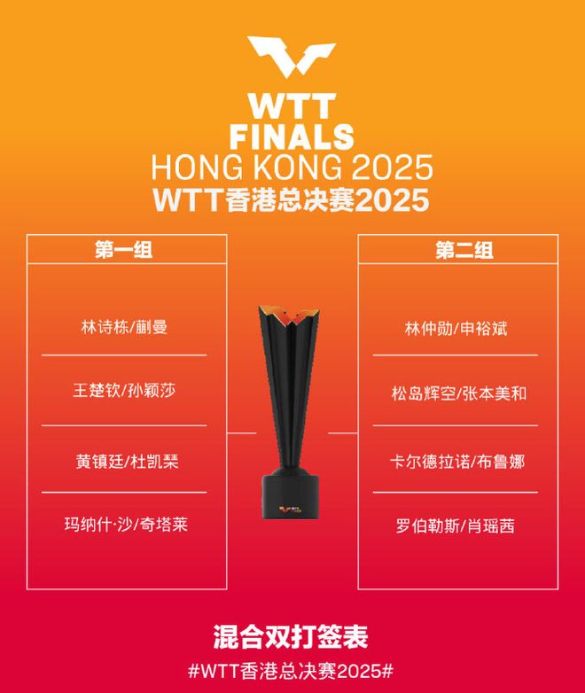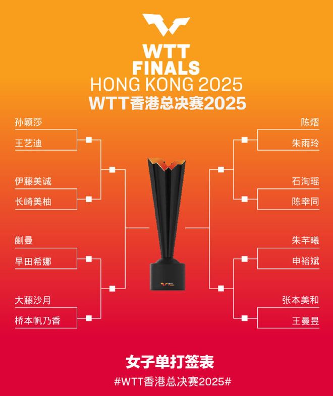 WTT香港总决赛2025将于12月10日至14日在中国香港红磡体育馆举行,国乒11人将出战。12月8日,男女单打、混合双打签表出炉。(央视新闻)