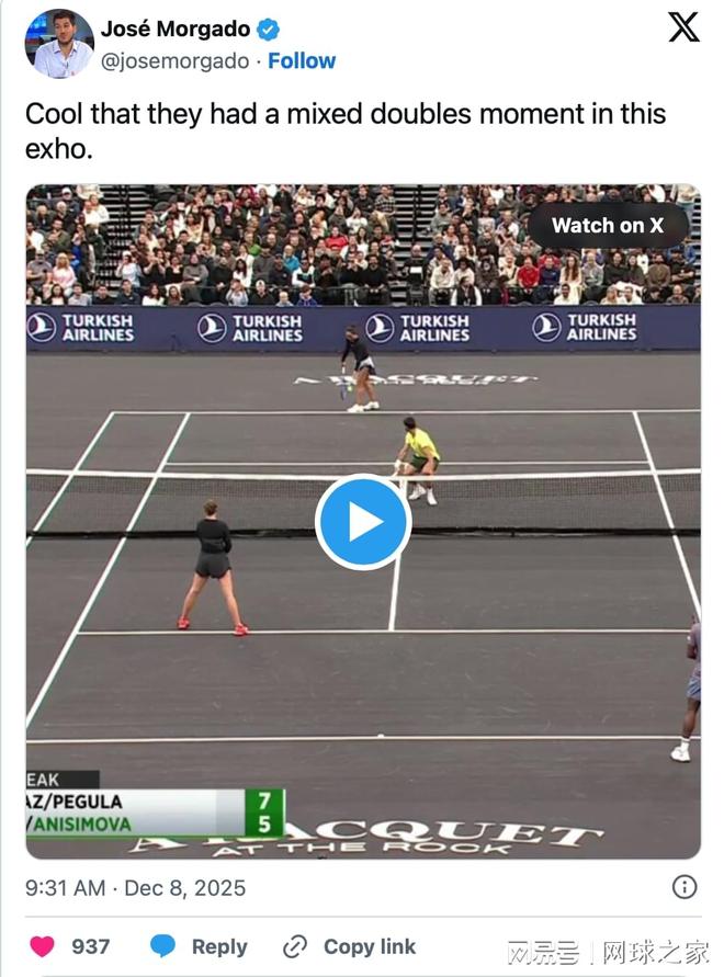 最终,阿尔卡拉斯和佩古拉以10-8的比分险胜蒂亚福与阿尼西莫娃组合,为这场表演赛画上句号。全场都是笑声、欢乐,再次证明阿尔卡拉斯非常懂得如何让表演赛变得更有趣。