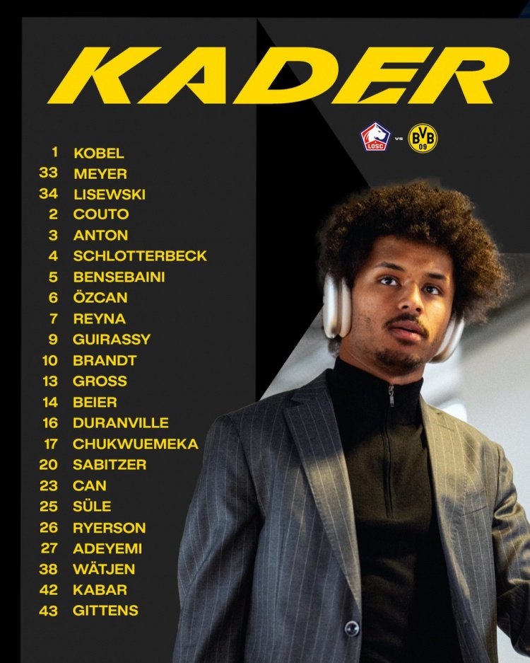 欧冠多特客战里尔名单:吉拉西、阿德耶米、布兰特在列