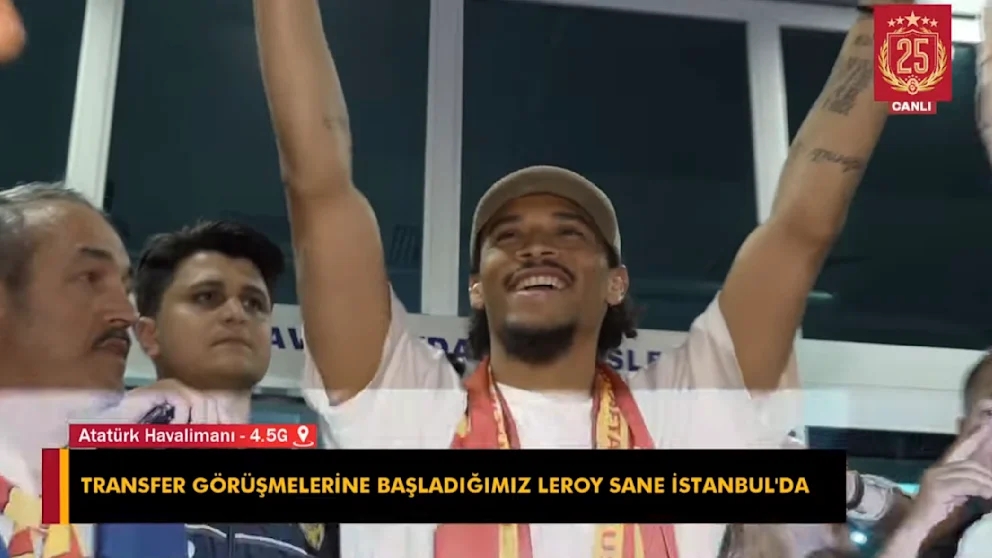 土耳其时间凌晨1点30分左右,萨内走下飞机,已经戴着加拉塔萨雷的围巾,他的妻子也陪伴在他身边。着陆后不久,萨内接受了采访,球迷们已经在等待并呼喊他的名字。