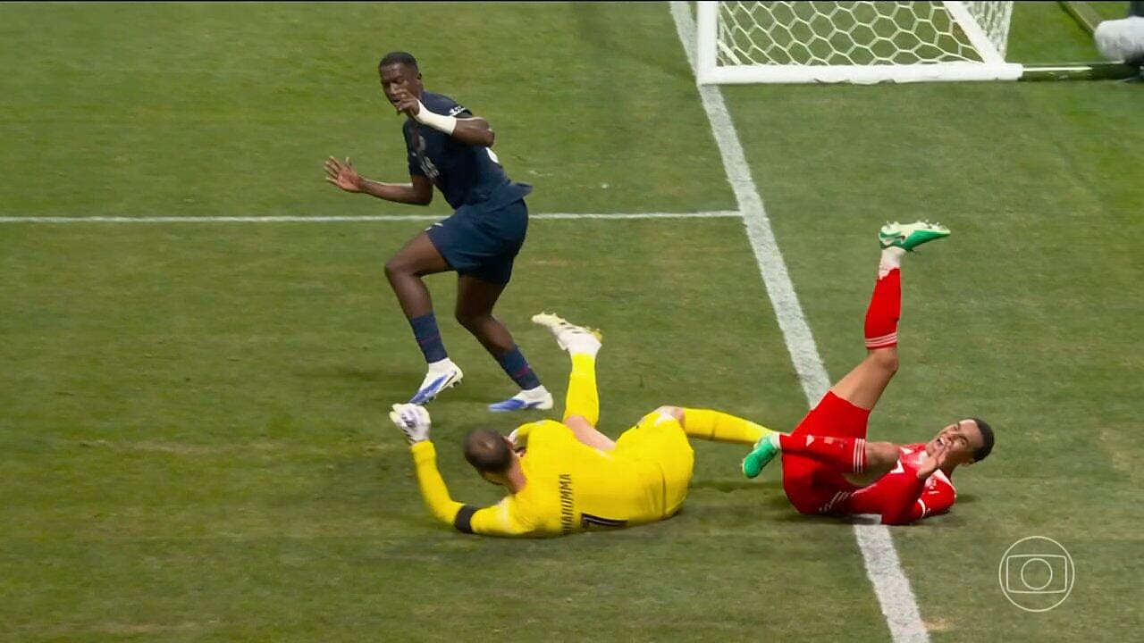 世俱杯1/4决赛,巴黎圣日耳曼vs拜仁半场结束前,穆西亚拉与多纳鲁马撞在一起,脚踝严重变形,随后被担架抬走,而穆西亚拉才刚伤愈数天。