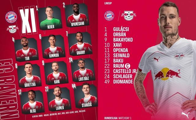 经过这个夏窗调整,拜仁基本沿用上赛季阵容框架,凯恩、奥利塞、基米希等人首发,路易斯-迪亚斯与塔两位新援首次为拜仁出战德甲比赛。