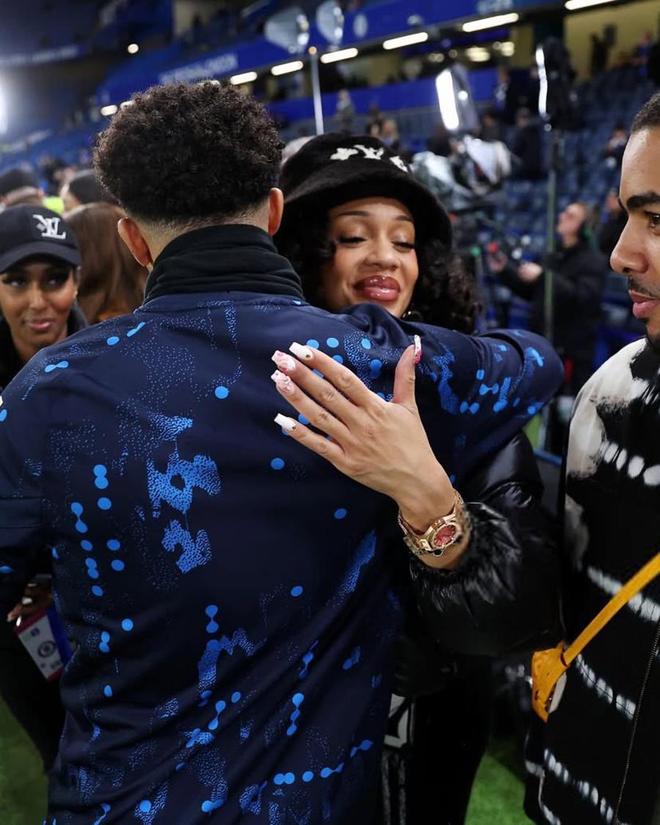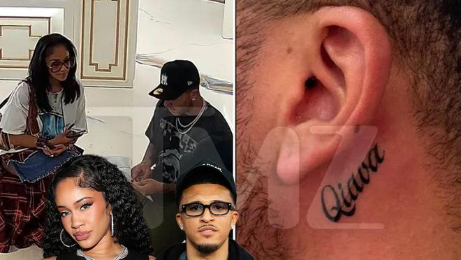 虽然远离赛场,但桑乔在球场外过得非常滋润。他最近与美国说唱女星女友萨维蒂(Saweetie)一起出现在纹身店,将女友原名中的「Quiava」纹在耳朵下方。目击者透露两人在店里热吻,还亲得很热烈。过去,这位女星曾现场观看桑乔在切尔西的比赛,后者专门跑到场边拥抱了她。