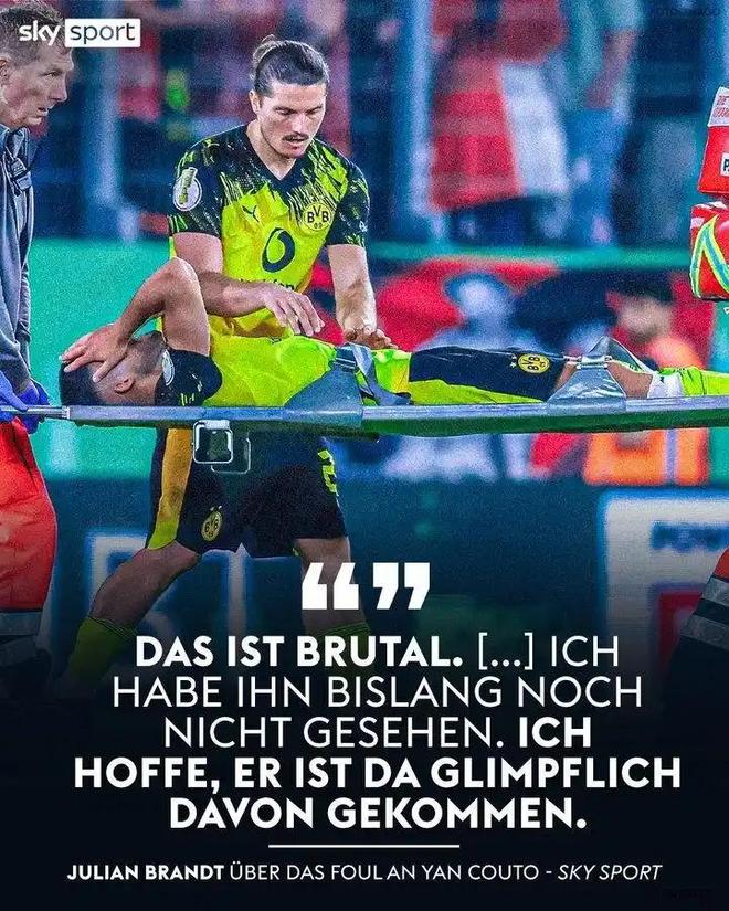 在德国杯的首轮比赛中,多特蒙德艰难战胜了红白埃森,对于黄黑军团来说,本场比赛的艰难之处还在于他们遭遇了对手的黑脚——凯尔西·奥乌苏防守扬科托的时候亮鞋钉,导致了巴西后卫