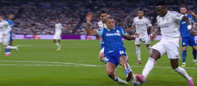 81’法昆多·梅迪纳被判在铲断维尼修斯过程中手球犯规,姆巴佩主罚点球梅开二度,皇马2比1反超。