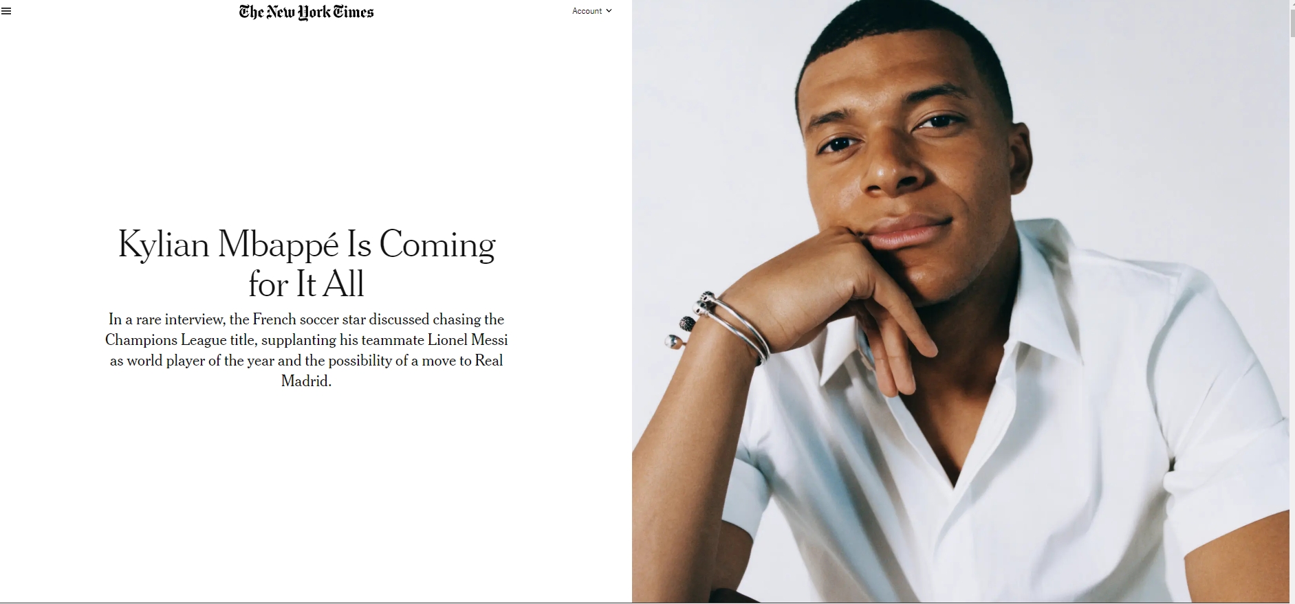 2022年,世界杯开打前,姆巴佩接受《纽约时报》采访时表示自己会赢得世界足球先生,这是新世代梅罗总有一天会落幕。