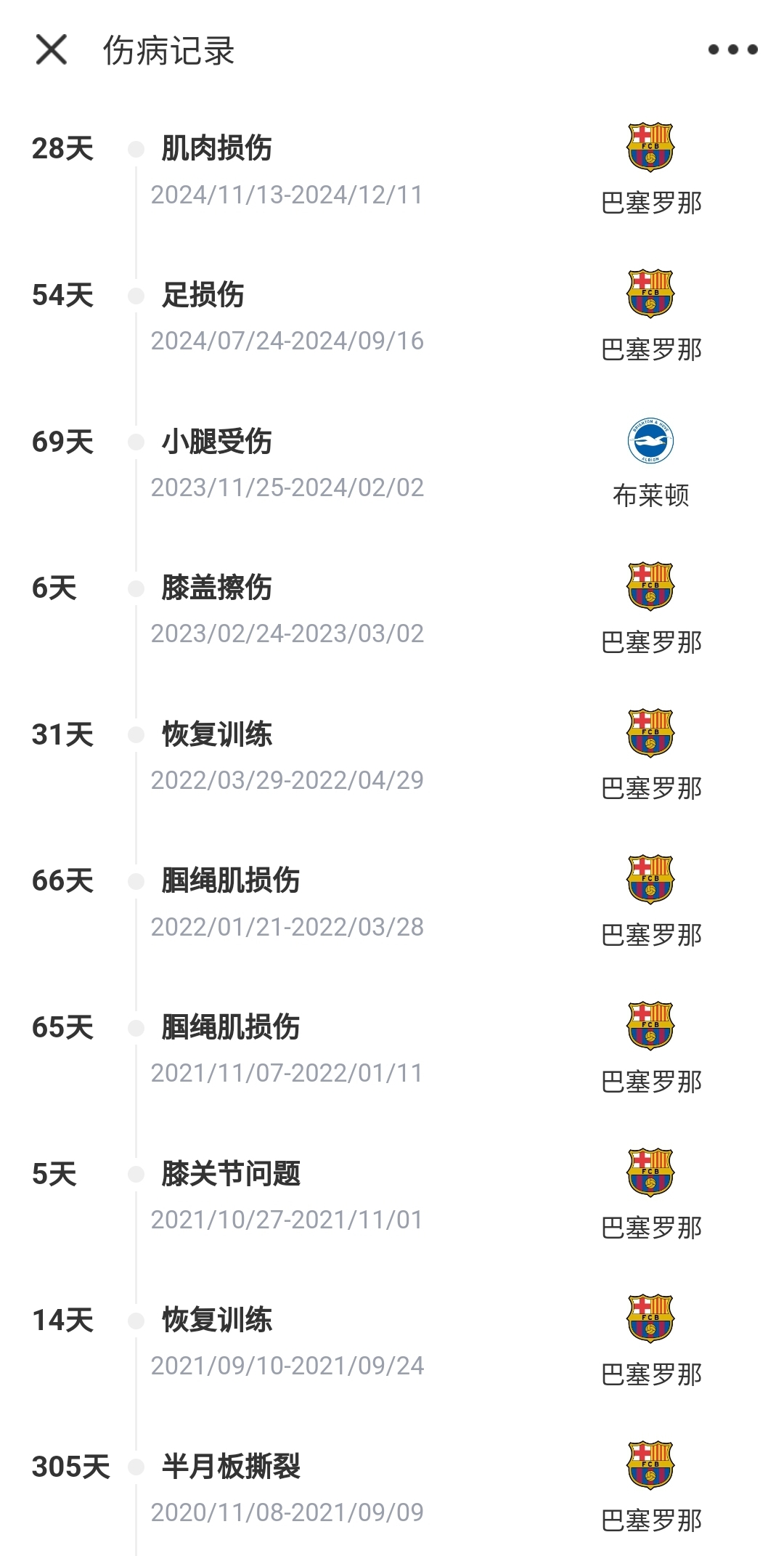 法蒂伤病史↓