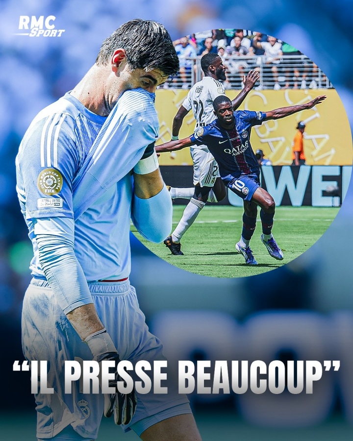 07月10日讯 世俱杯半决赛,巴黎圣日耳曼4-0战胜皇家马德里,巴黎前锋登贝莱传射建功。比赛中登贝莱不惜余力的拼抢,也给皇马门将库尔图瓦留下了深刻的印象。库尔图瓦赛后接受采访