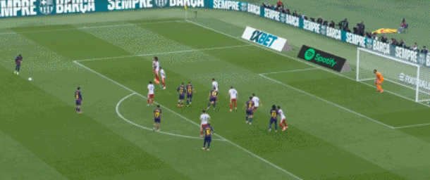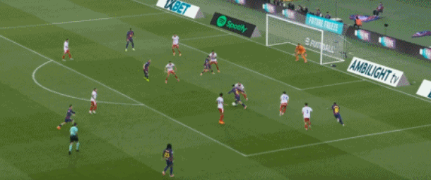 两队上半场以1比1的比分战平,在下半场,巴萨迟迟无法打入第二球。直到补时第3分钟,德容突入禁区右肋之后横传,阿劳霍铲射破门。