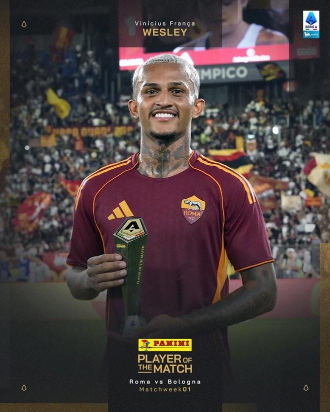 首秀打进唯一进球,韦斯利利马当选罗马vs博洛尼亚全场最佳