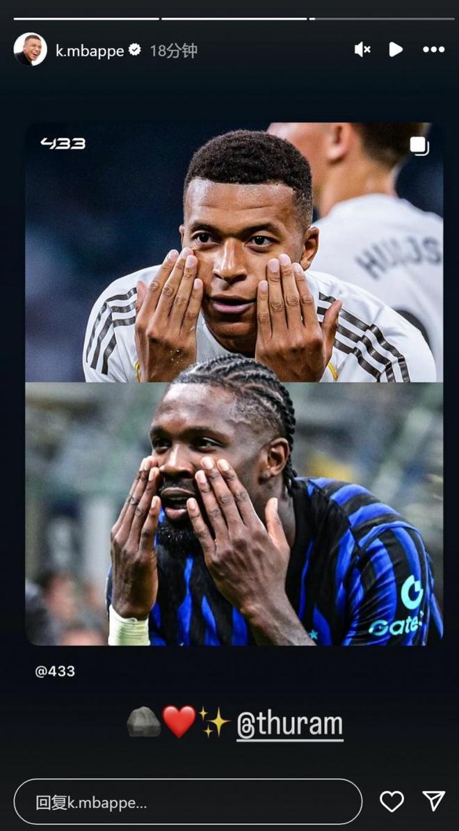 好兄弟!姆巴佩转发自己与图拉姆庆祝动作对比照,并图拉姆