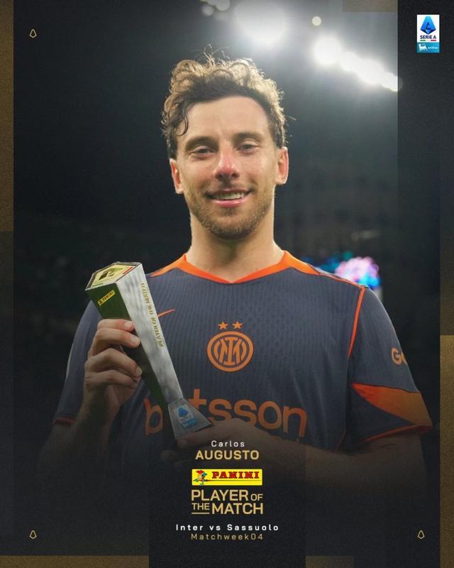 9月22日讯 国米在本轮意甲2-1击败萨索洛,国米边卫卡洛斯-奥古斯托在赛后当选全场最佳。