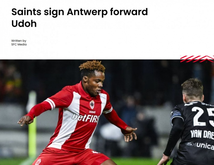 官方:南安普顿签下20岁安特卫普左边锋乌多,合同为期三年半