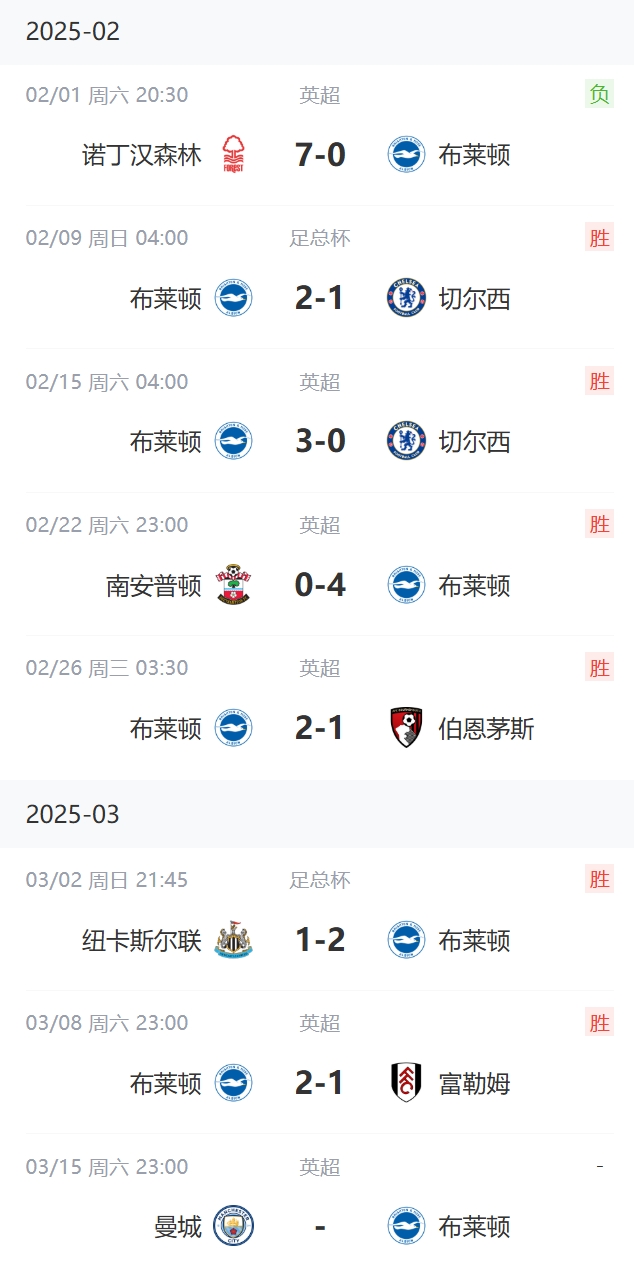 曼城瑟瑟发抖布莱顿被森林灌7喜后,各项赛事狂砍6连胜