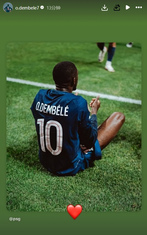 07月06日讯 登贝莱赛后发布社媒,晒出了自己本场比赛的照片。在story中,他特别展示了自己模仿若塔庆祝姿势,并配以♥️。