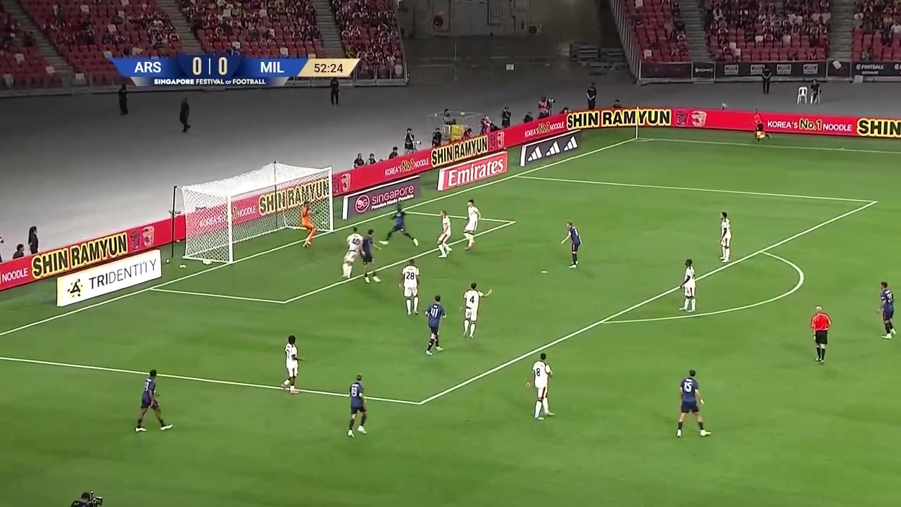 阿森纳10领先AC米兰!第52分钟,基维奥尔助攻萨卡后点包抄破门
