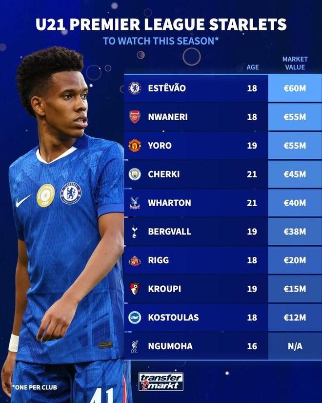 英超U21球员身价: