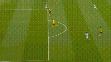第37分钟,狼队中场传球失误,曼城拿球后反击,赖因德斯高速前插,接到队友的传球后,他直接起脚推射远角破门,这也是他英超首个进球。
