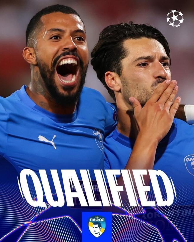 第二个奇迹来自塞浦路斯的帕福斯。他们首回合2-1拿下塞尔超豪门贝尔格莱德红星,次回合在主场几乎遭遇绝杀,第89分钟却靠贾贾的进球完成绝平,总比分3-2淘汰对手,爆冷杀入欧冠正赛!要知道,帕福斯的身价只有2085万欧元,而红星则接近8000万欧元。