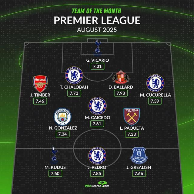 北京时间9月2日,WhoScored根据球员评分列出了英超8月最佳阵容。其中,切尔西4将入选成为最大赢家。而领头羊利物浦则无一人入选,表现出色的索博、埃基蒂克、赫拉芬贝赫等人悉数落选,这引发了巨大的争议。