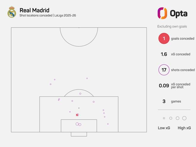据统计,阿隆索前三场联赛仅让对手完成了17脚射门,为梦三瓜帅后最低。