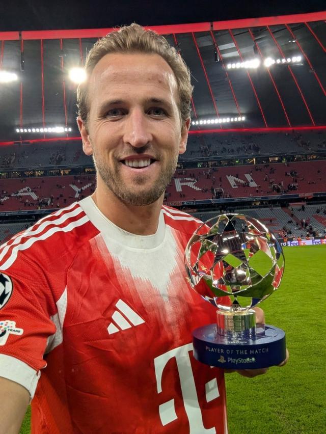 9月18日讯 拜仁在本轮欧冠3-1力克切尔西,中锋凯恩当选全场最佳并晒出自拍照,他也在赛后接受采访被问及相关话题。——当选全场最佳球员"我儿子最爱这些奖杯。幸好它们不算太重