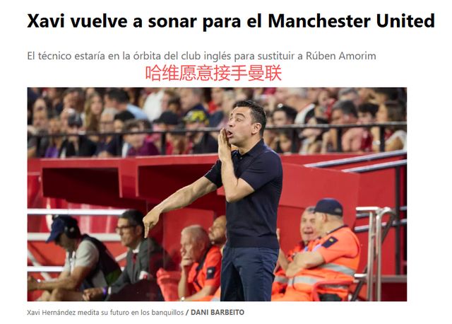 阿莫林的帅位岌岌可危,外界猜测谁会是下一任曼联主帅。《每日体育报》指出,哈维愿意立刻接手曼联。经过1年的休息调整之后,45岁的哈维希望重返教练岗位,他已经收到很多邀请。
