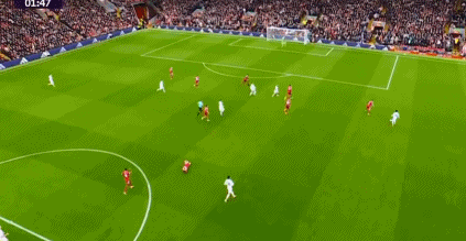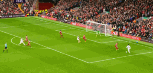 第20分钟,萨拉赫直塞,加克波禁区弧右脚推射击中立柱。