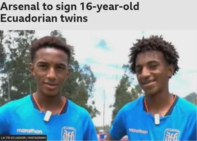 BBC也发文报道阿森纳将签约16岁的金特罗兄弟,并且BBC表示两名小将2027年正式加盟后将签下一份5年合同。
