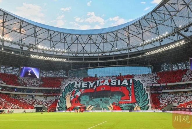 我的梦想是……成为金牌球市?不,古蜀文明的讲述者。成都的格局有多大?看看8月12日晚,绝美Tifo(源自意大利,特指足球比赛中球迷在看台上展示的大型视觉装置,被翻译为“巨型横幅”或“看台拼图”)震撼全场,赛前双方球员入场时,搭配英文“嘿!亚洲!猜猜谁来了!”字样的手绘巨幅Tifo缓缓升起,面积超3000平方米。三星堆青铜面具、太阳神鸟等四川元素,将古蜀文明与足球精神炽热交织。东看台的巨大队徽,南看台“跟随你的心,永不停歇”英文字样的Tifo,交相辉映,兼具含蓄与霸气,既体现中国人的谦逊,又针对亚冠精英赛(本场为附加赛)潜在对手传递信号——提醒他们成都蓉城不惧任何对手,让成都金牌球市的形象,直接火到了外网。